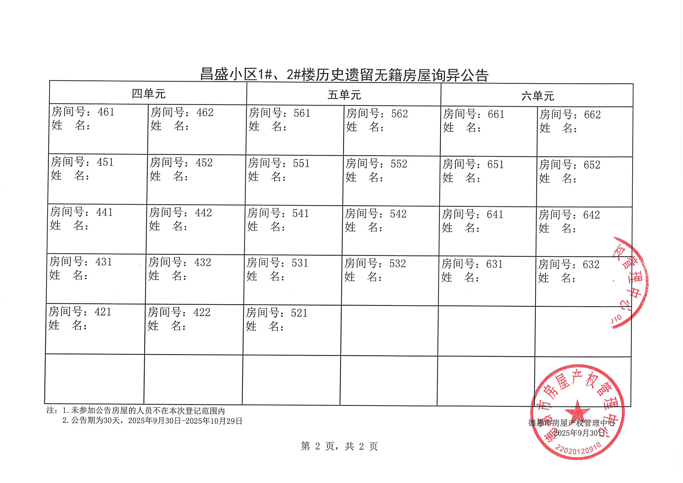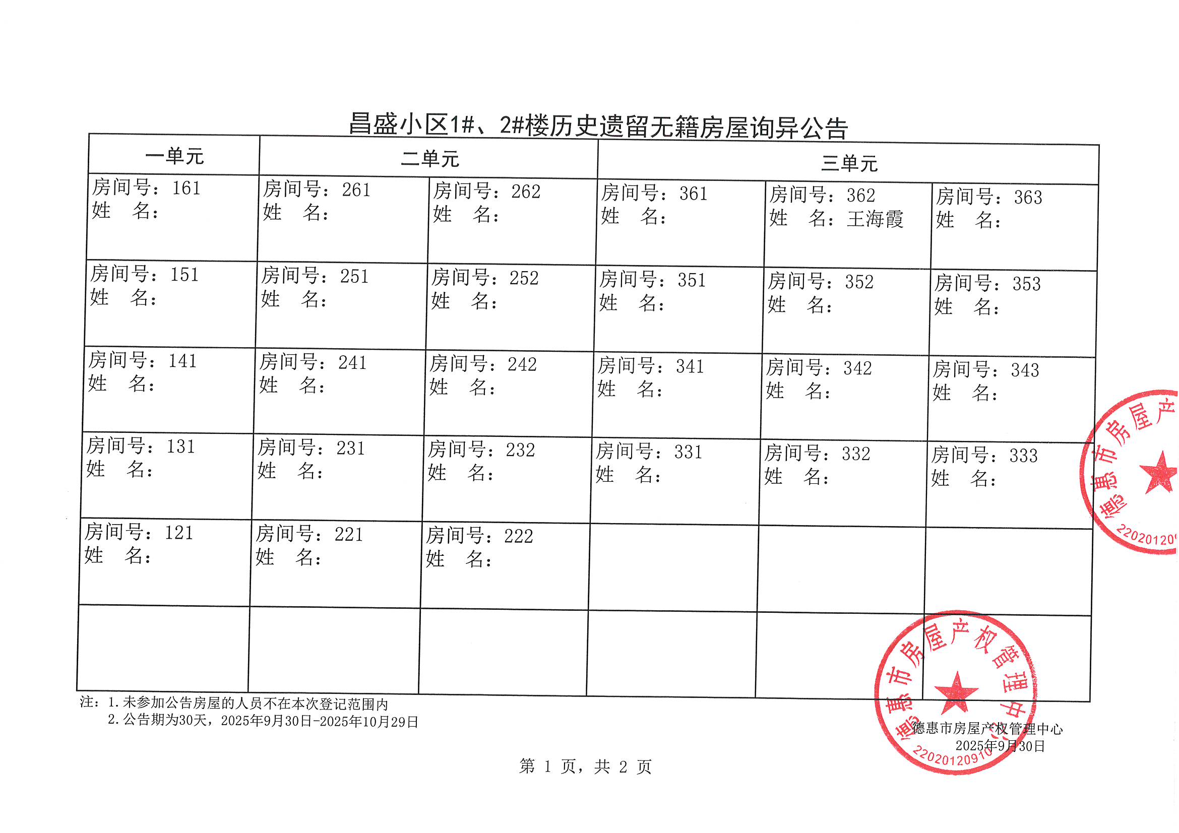 昌盛小区1#.2#楼历史遗留无籍房屋询异公告