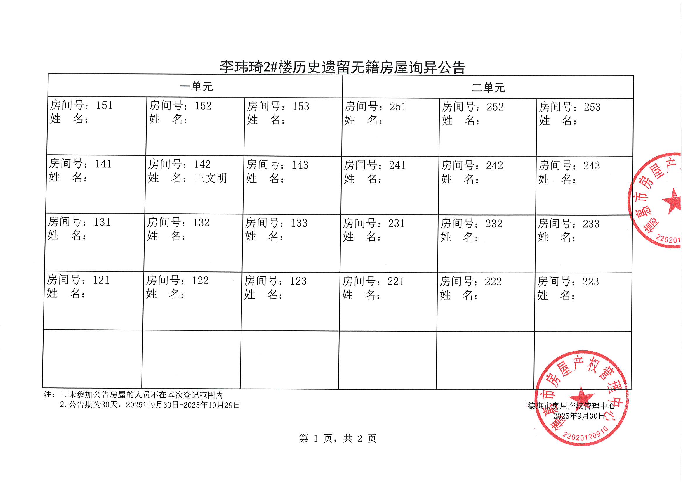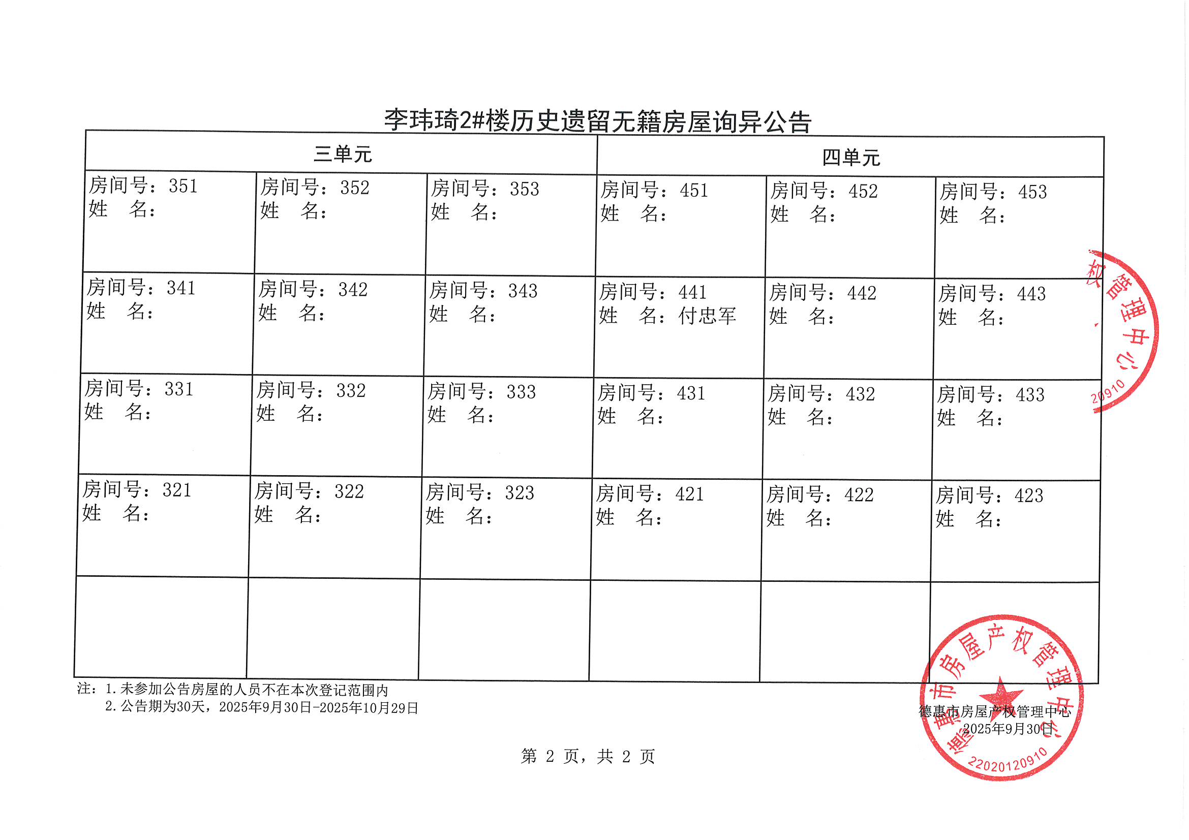 李玮琦2#楼历史遗留无籍房屋询异公告