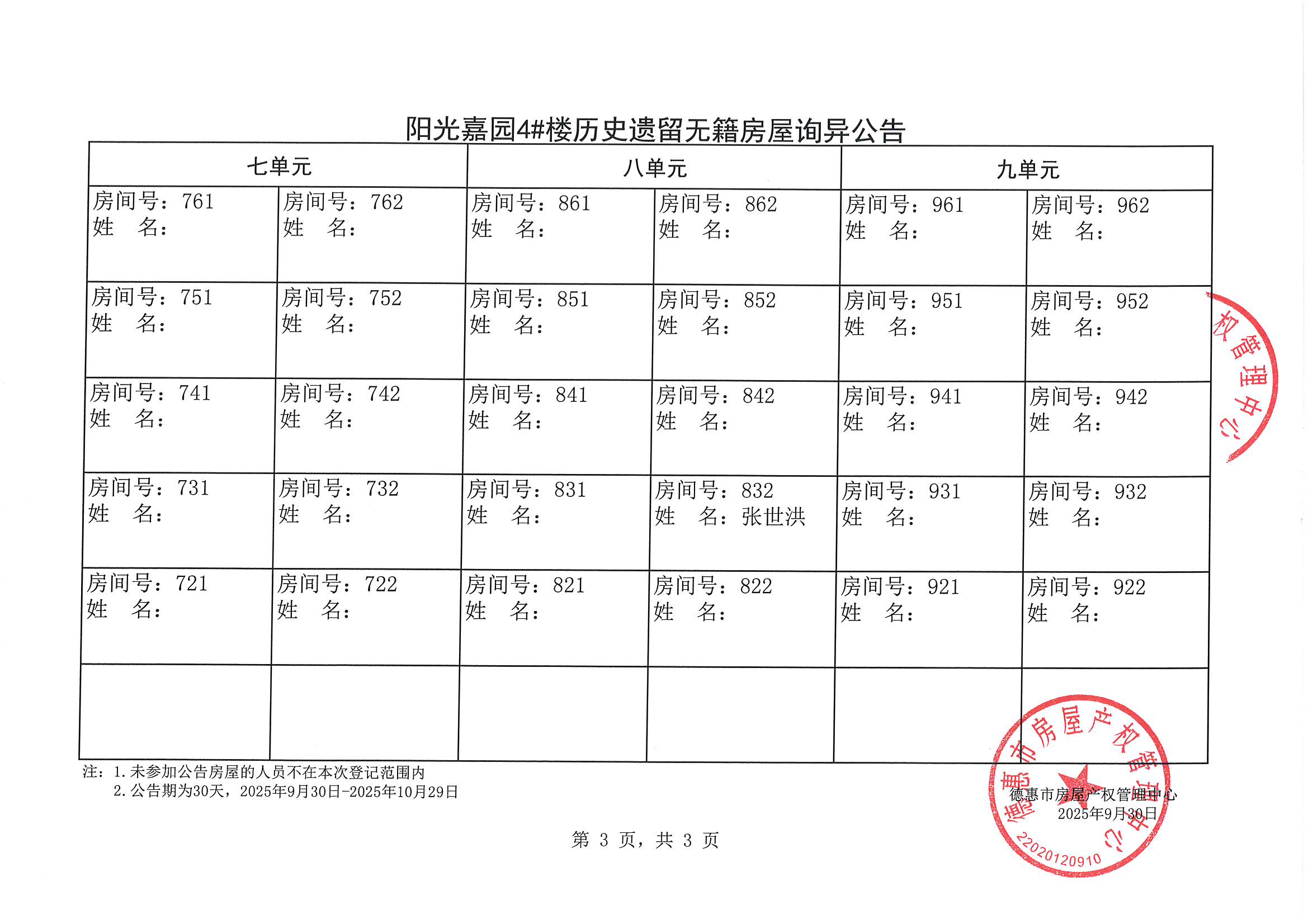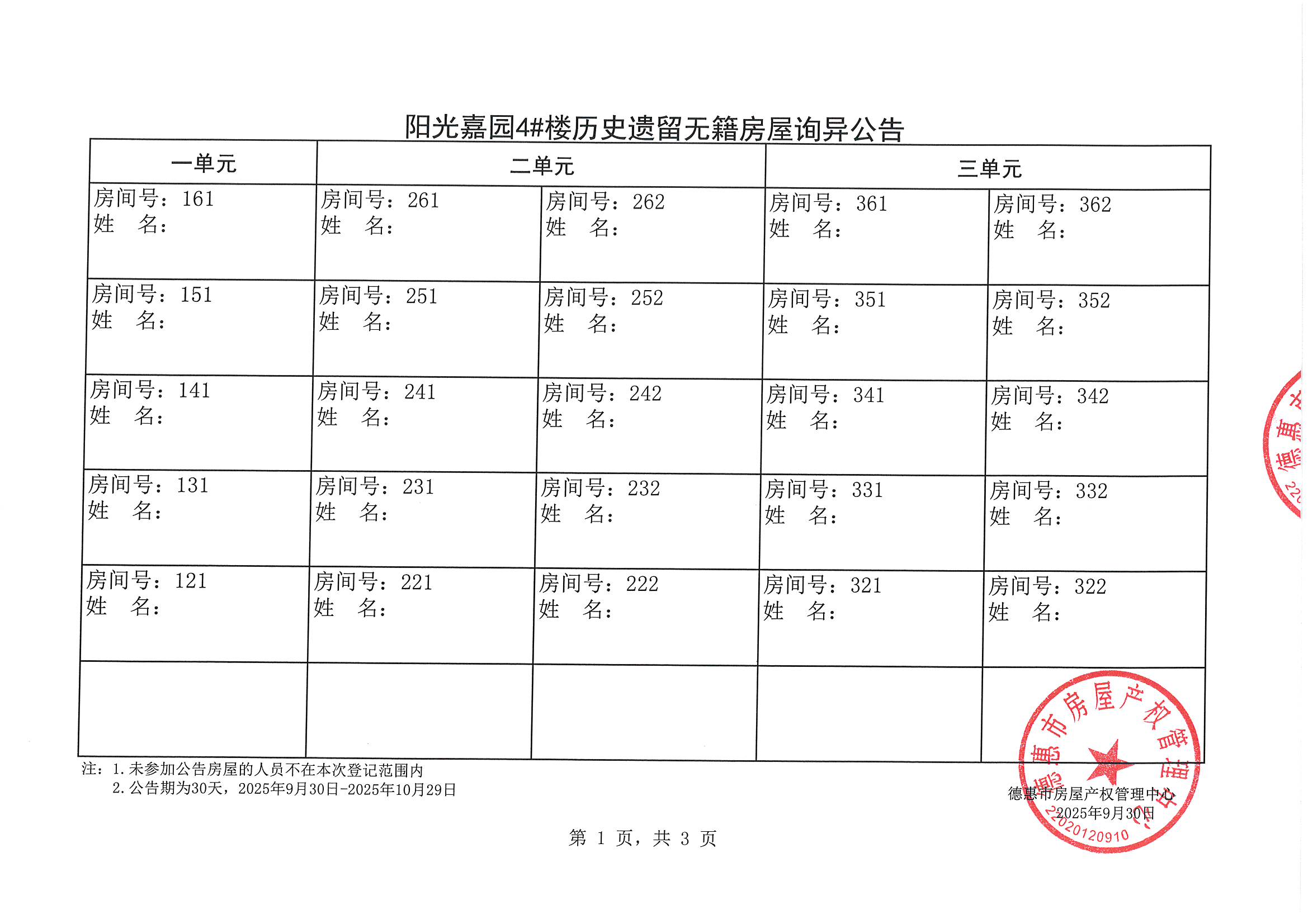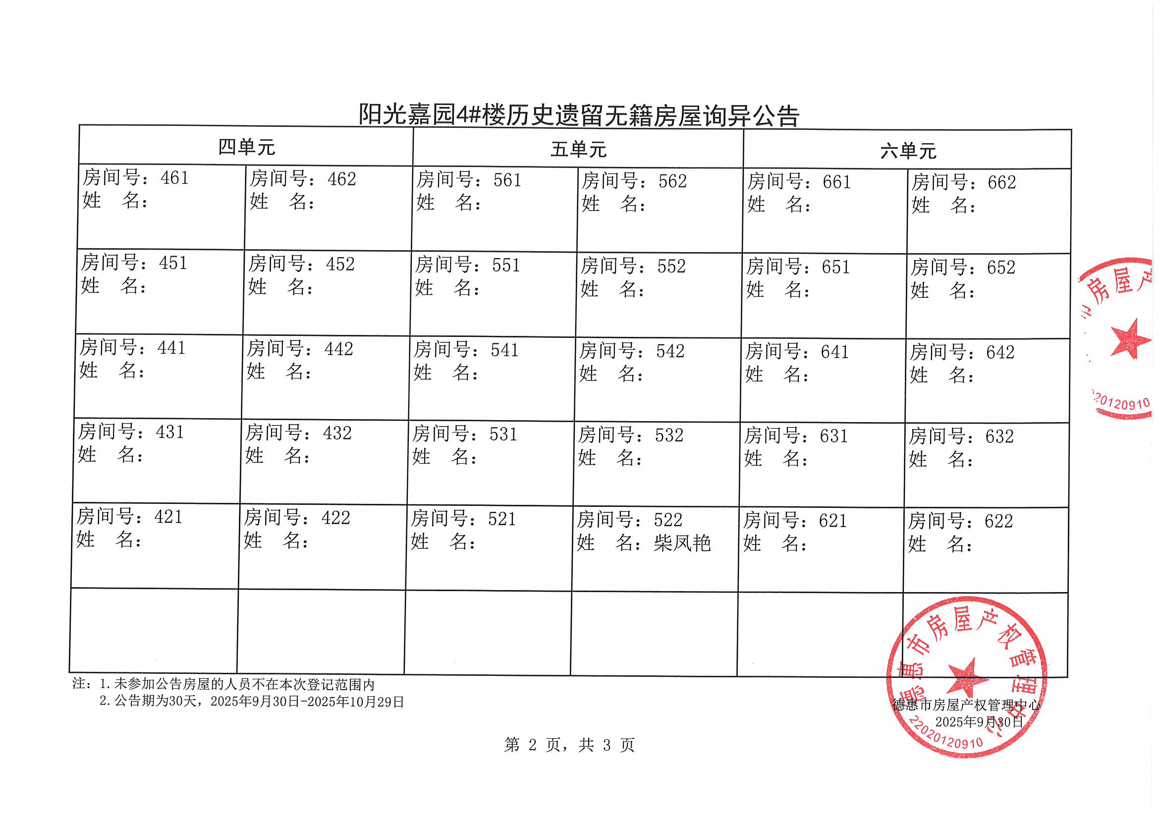 阳光嘉园4#楼历史遗留无籍房屋询异公告